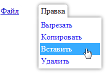 Ниспадающее меню